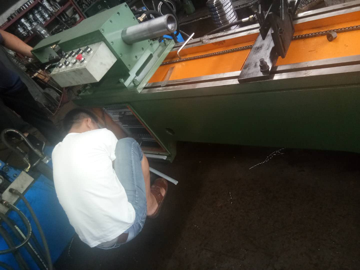 1、拆除镗床主轴箱,松开机床的压板及调整楔铁即可实现。